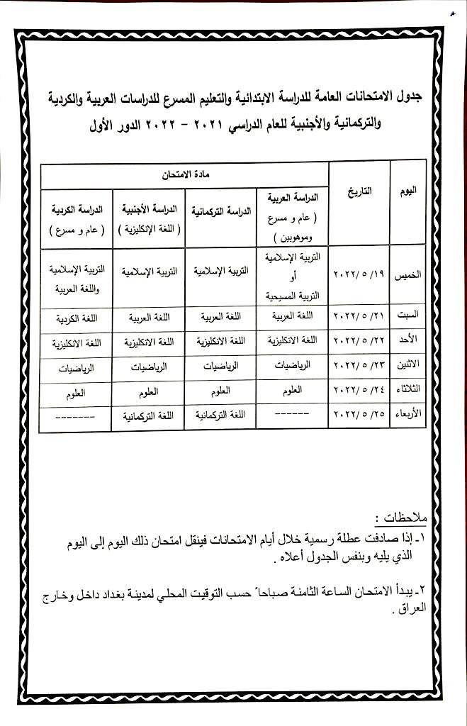 التربية تنشر جدول الامتحانات للدراسة الابتدائية - عاجل
