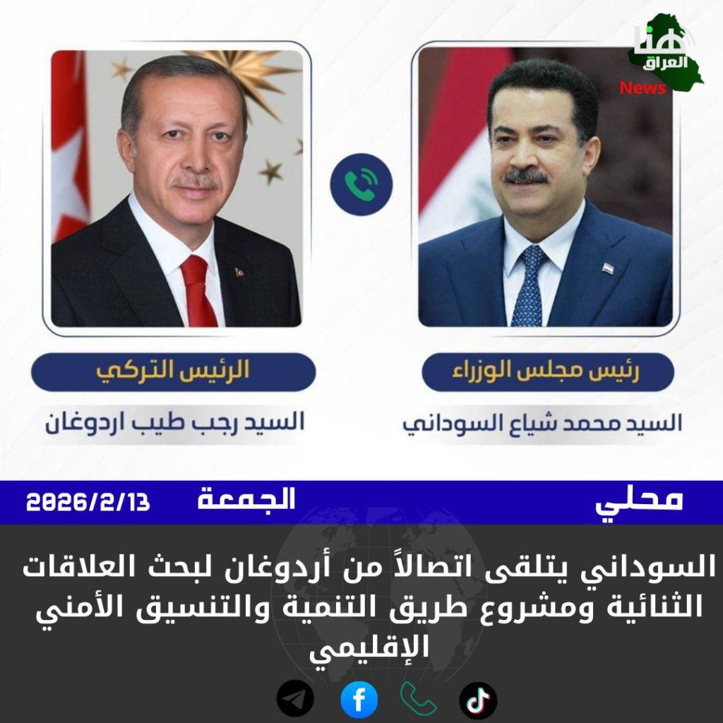 تلقى رئيس مجلس الوزراء محمد شياع السوداني اتصالاً هاتفياً من الرئيس التركي رجب طيب أردوغان، جرى خلاله بحث العلاقات الثنائية وسبل تنميتها بما يعزز التعاون المشترك في مختلف المجالات.