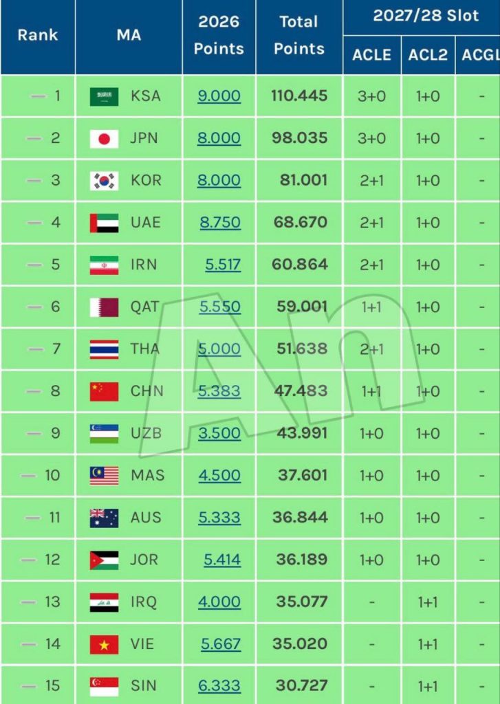 آخر تحديث لتصنيف الدوريات الأسيوية