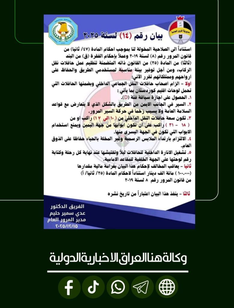 الرئيسية/امن/أبرزها ارتداء الملبس الرسمي.. المرور تفرض 5 قرارات على النقل الجماعي امنمحلي أبرزها ارتداء الملبس الرسمي.. المرور تفرض 5 قرارات على النقل الجماعي شاركها فيسبوك X لينكدإن Tumblr بينتيريست Reddit VKontakte Odnoklassniki Pocket مشاركة عبر البريد طباعة
