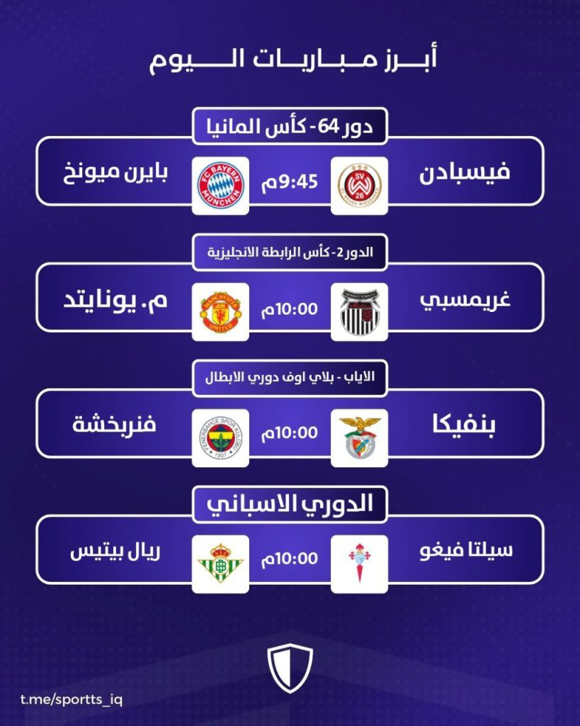 الرئيسية/رياضة/أبرز مباريات اليوم 27 أغسطس رياضة أبرز مباريات اليوم 27 أغسطس شاركها فيسبوك X لينكدإن Tumblr بينتيريست Reddit VKontakte Odnoklassniki Pocket مشاركة عبر البريد طباعة