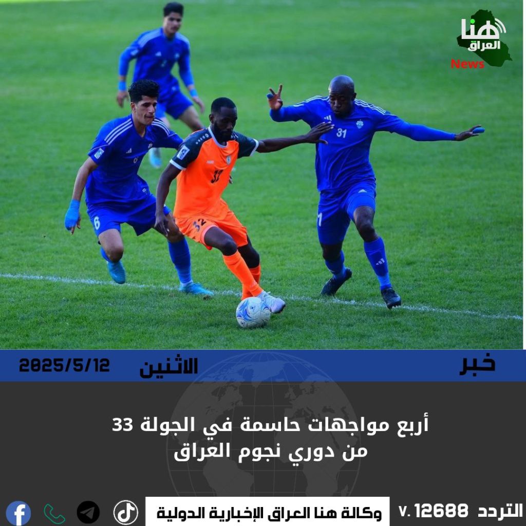 أربع مواجهات حاسمة في الجولة 33 من دوري نجوم العراق