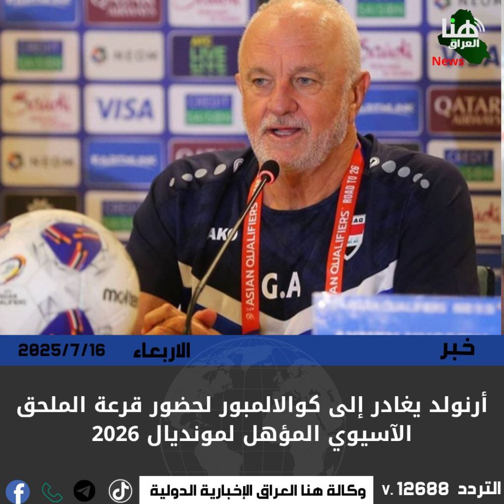 أرنولد يغادر إلى كوالالمبور لحضور قرعة الملحق الآسيوي المؤهل لمونديال 2026