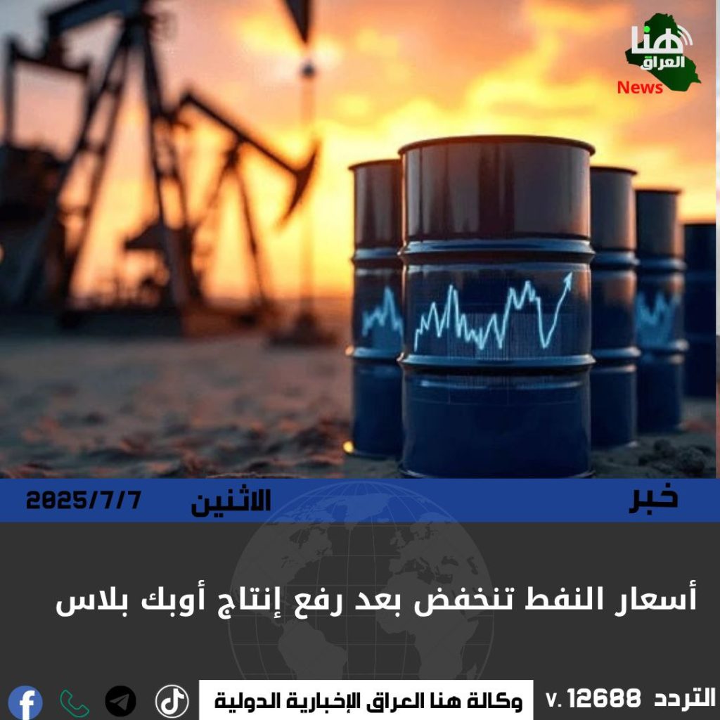أسعار النفط تنخفض بعد رفع إنتاج أوبك بلاس