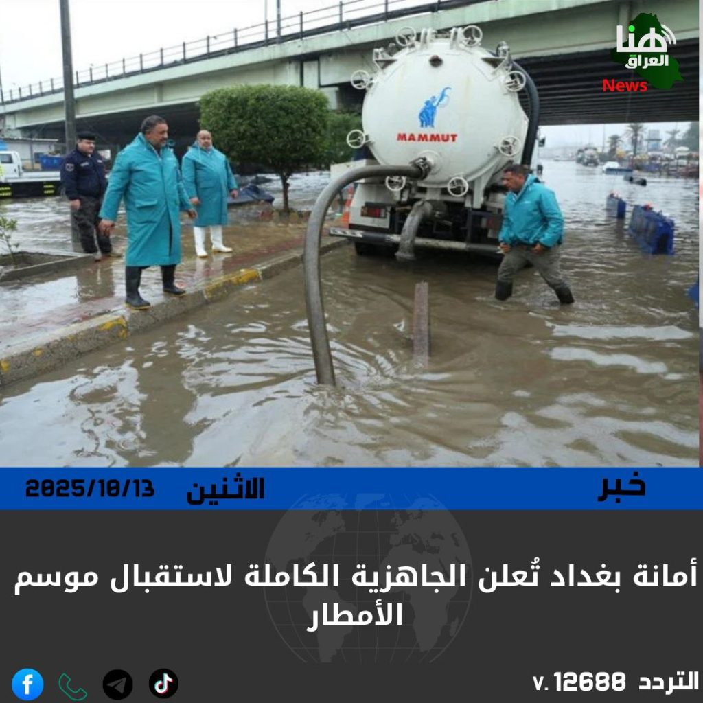 أكدت أمانة بغداد استعدادها التام لاستقبال موسم الأمطار عبر خطة طوارئ متكاملة تتضمن إصلاح التخسفات ومعالجة الأعطال في شبكات الصرف وإنشاء خطوط ومحطات فرعية إضافية لتعزيز كفاءة التصريف.
