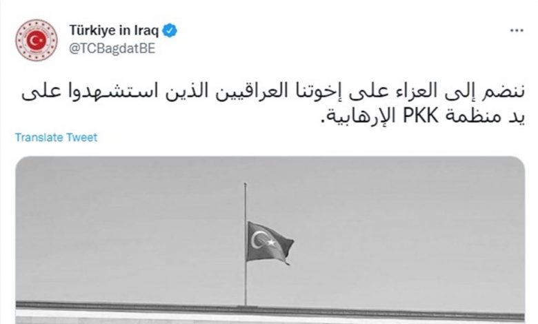 وذكرت السفارة في بيان مقتضب ورد لوكالة هنا العراق الاخبارية ، “ننضم إلى العزاء على إخوتنا العراقيين الذين استشهدوا على يد منظمة PKK الإرهابية”.