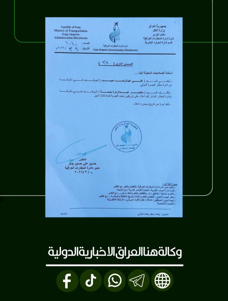 الرئيسية/محلي/إعفاء علي عبد الرضا من إدارة مطار البصرة الدولي وتعيين منتصر عبد الزهرة خلفاً له محلي إعفاء علي عبد الرضا من إدارة مطار البصرة الدولي وتعيين منتصر عبد الزهرة خلفاً له شاركها فيسبوك X لينكدإن Tumblr بينتيريست Reddit VKontakte Odnoklassniki Pocket مشاركة عبر البريد طباعة