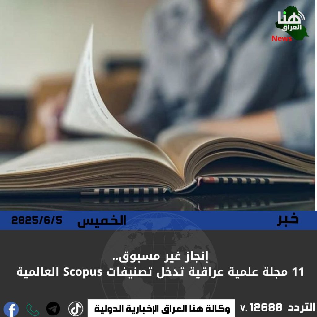 إنجاز غير مسبوق.. 11 مجلة علمية عراقية تدخل تصنيفات Scopus العالمية