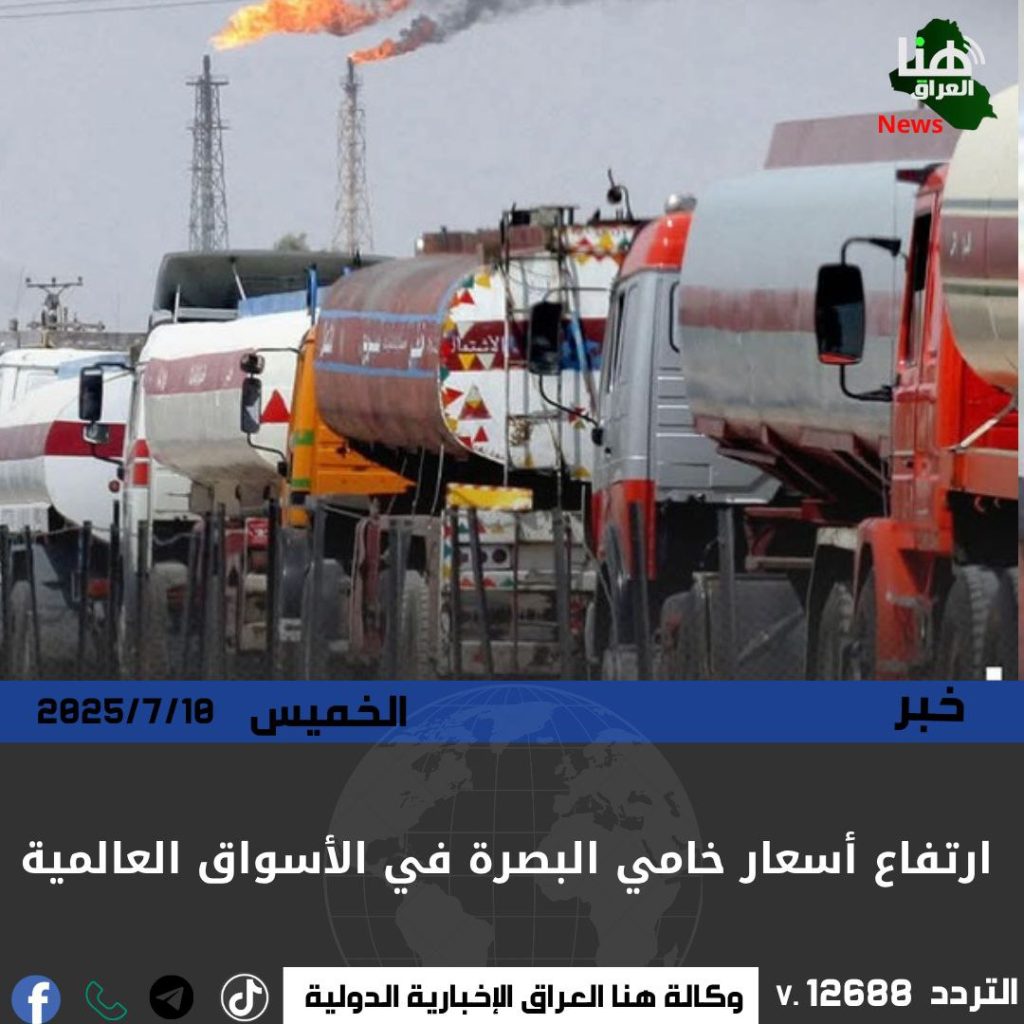 ارتفع سعر خام البصرة المتوسط إلى 71.26 دولاراً للبرميل، بينما بلغ سعر خام البصرة الثقيل 68.16 دولاراً للبرميل، بنسبة تغيير بلغت +0.26%.