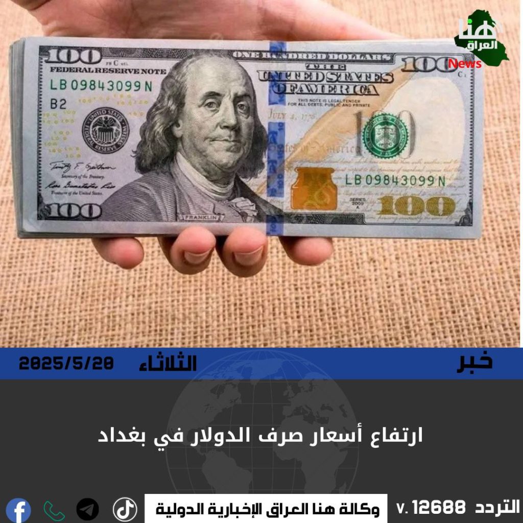 سجّلت أسعار صرف الدولار أمام الدينار العراقي ارتفاعًا في أسواق العاصمة بغداد.