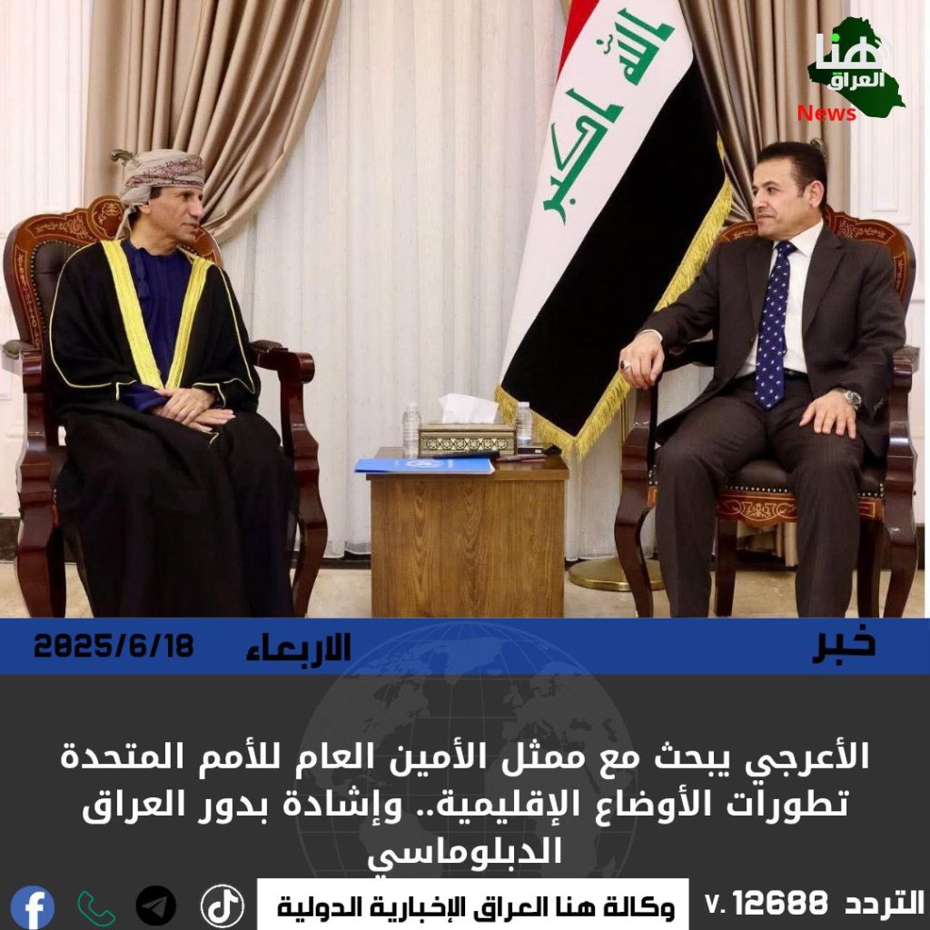 استقبل مستشار الأمن القومي قاسم الأعرجي، اليوم، ممثل الأمين العام للأمم المتحدة، حيث جرى بحث مستجدات الأوضاع الإقليمية وسبل تعزيز التعاون بين العراق والمنظمة الدولية.