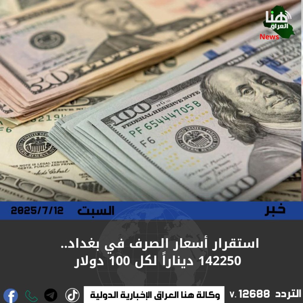 استقرار أسعار الصرف في بغداد.. 142250 ديناراً لكل 100 دولار