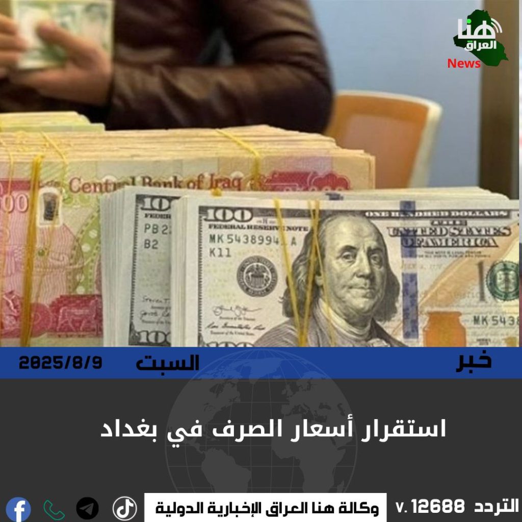 استقرت أسعار صرف الدولار في أسواق بغداد عند 140,750 ديناراً لكل 100 دولار للبيع، و138,750 ديناراً للشراء، فيما استقرت أسعار البورصات عند 139,850 ديناراً.