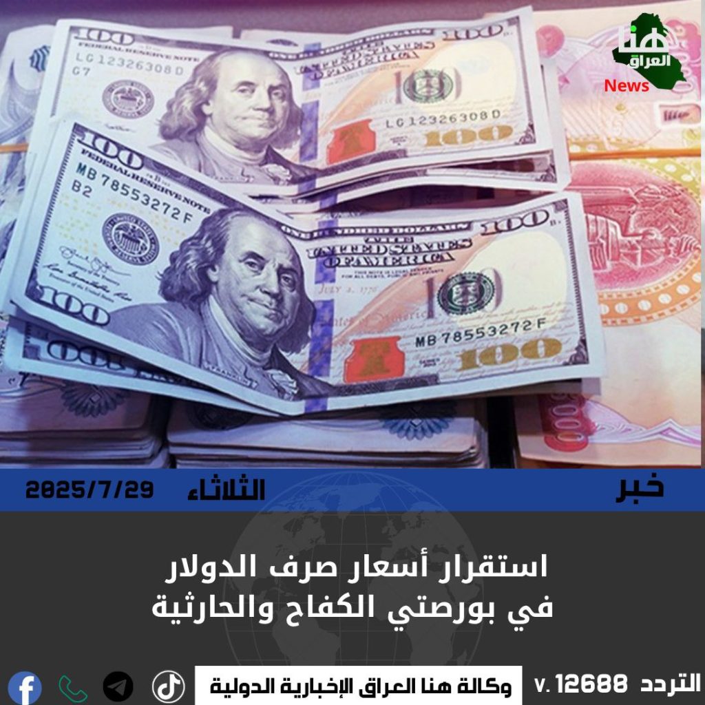 سجلت أسعار صرف الدولار استقراراً في بورصتي الكفاح والحارثية عند 139,250 ديناراً لكل 100 دولار.
