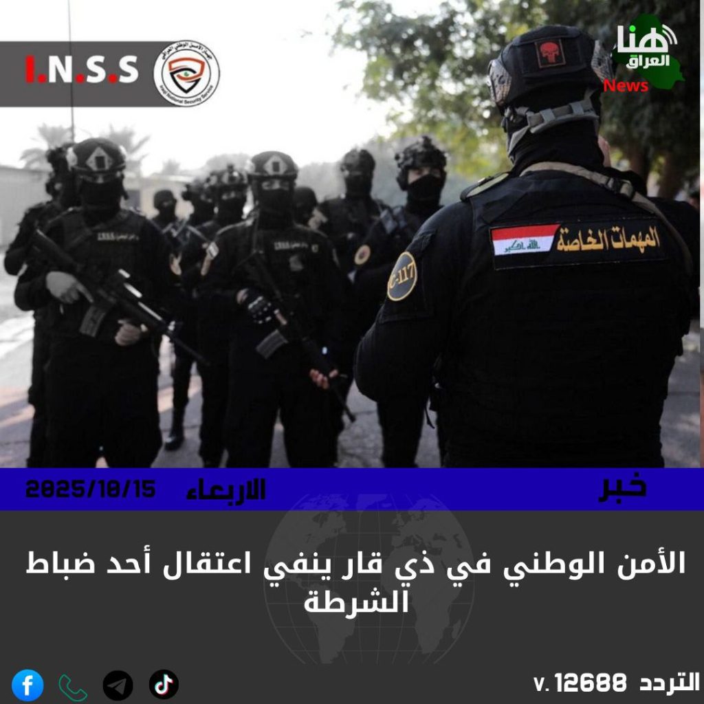 نفى جهاز الأمن الوطني في محافظة ذي قار تنفيذ أي عملية اعتقال بحق أحد ضباط الشرطة، مؤكداً أن الموضوع اقتصر على استدعاء لأغراض تحقيقية من قبل قيادة شرطة المحافظة.