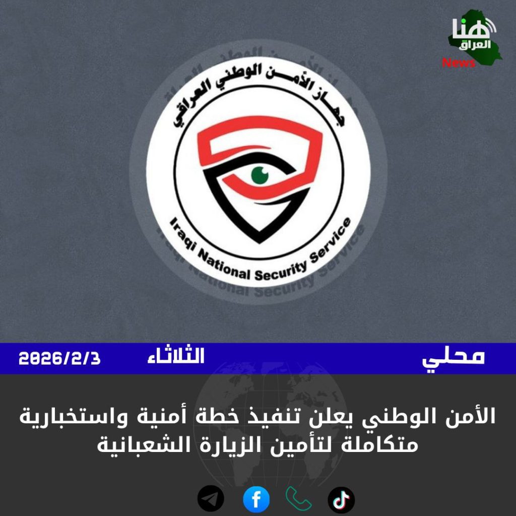 أكد مدير العلاقات والإعلام في جهاز الأمن الوطني العراقي، أرشد الحاكم، أن الجهاز باشر بتنفيذ خطة أمنية واستخبارية متكاملة لتأمين الزيارة الشعبانية، تعتمد المنهج الاستباقي الاحترازي لمنع أي تهديدات محتملة قبل وقوعها.