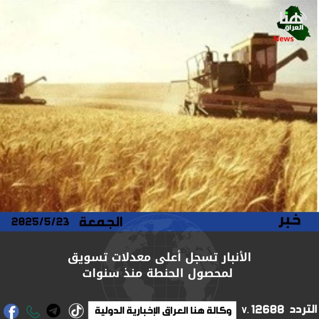 أعلنت شعبة زراعة ناحية البغدادي في محافظة الأنبار، تسجيل المحافظة أعلى كمية في تسويق محصول الحنطة للموسم الحالي، في مؤشر على تعافي القطاع الزراعي بعد سنوات من التحديات الأمنية.