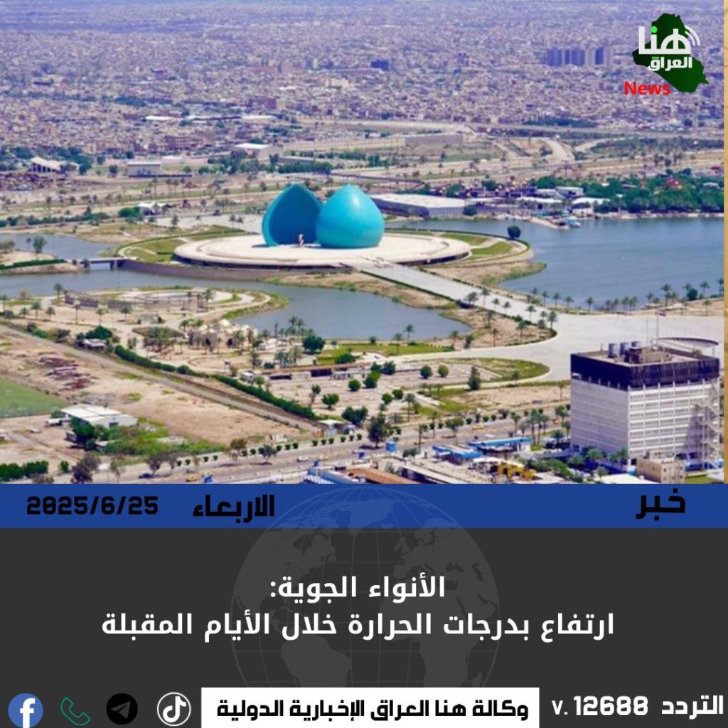 أعلنت هيئة الأنواء الجوية عن ارتفاع ملحوظ سيطرأ على درجات الحرارة في عموم البلاد خلال الأيام الأربعة القادمة.