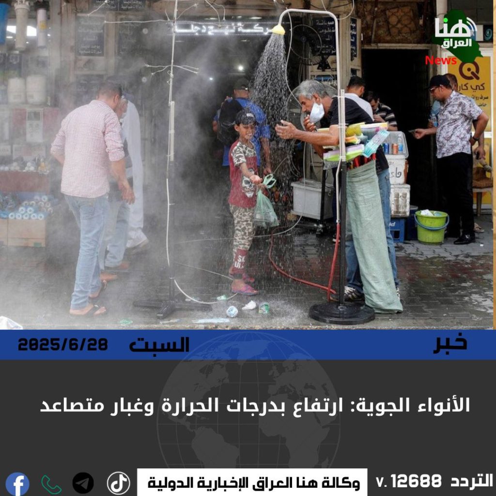 توقعت هيئة الأنواء الجوية أجواءً حارة في مختلف مناطق العراق خلال الأيام المقبلة، مشيرة إلى تصاعد موجات غبار في بعض المحافظات نتيجة التغيرات المناخية والرياح الجافة.