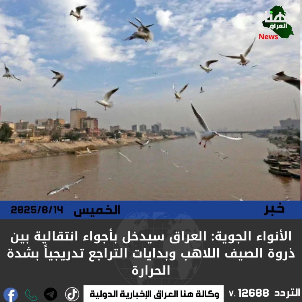 الرئيسية/الطقس/الأنواء الجوية: العراق سيدخل بأجواء انتقالية بين ذروة الصيف اللاهب وبدايات التراجع تدريجياً بشدة الحرارة الطقسمحلي الأنواء الجوية: العراق سيدخل بأجواء انتقالية بين ذروة الصيف اللاهب وبدايات التراجع تدريجياً بشدة الحرارة شاركها فيسبوك X لينكدإن Tumblr بينتيريست Reddit VKontakte Odnoklassniki Pocket مشاركة عبر البريد طباعة