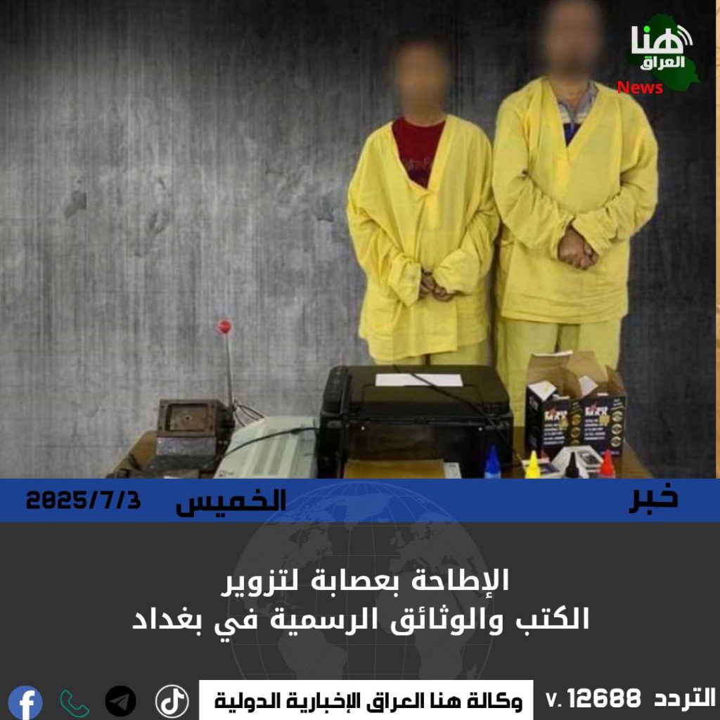 تمكنت قوة من عمليات بغداد من الإطاحة بعصابة متخصصة في تزوير الكتب والوثائق الرسمية وسط العاصمة.