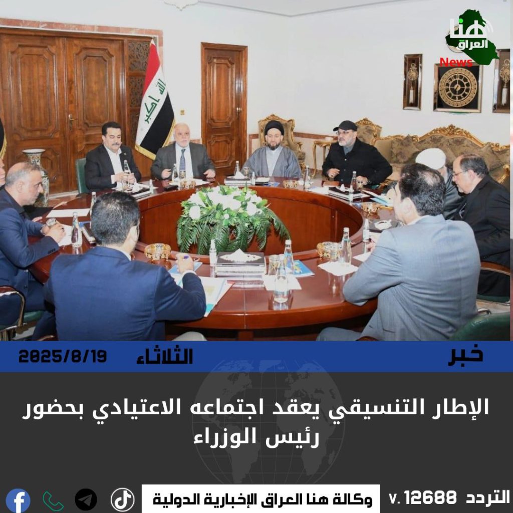 عقد الإطار التنسيقي اجتماعه الاعتيادي بحضور رئيس مجلس الوزراء محمد شياع السوداني، لبحث الملفات على المستويات المحلية والإقليمية والدولية.