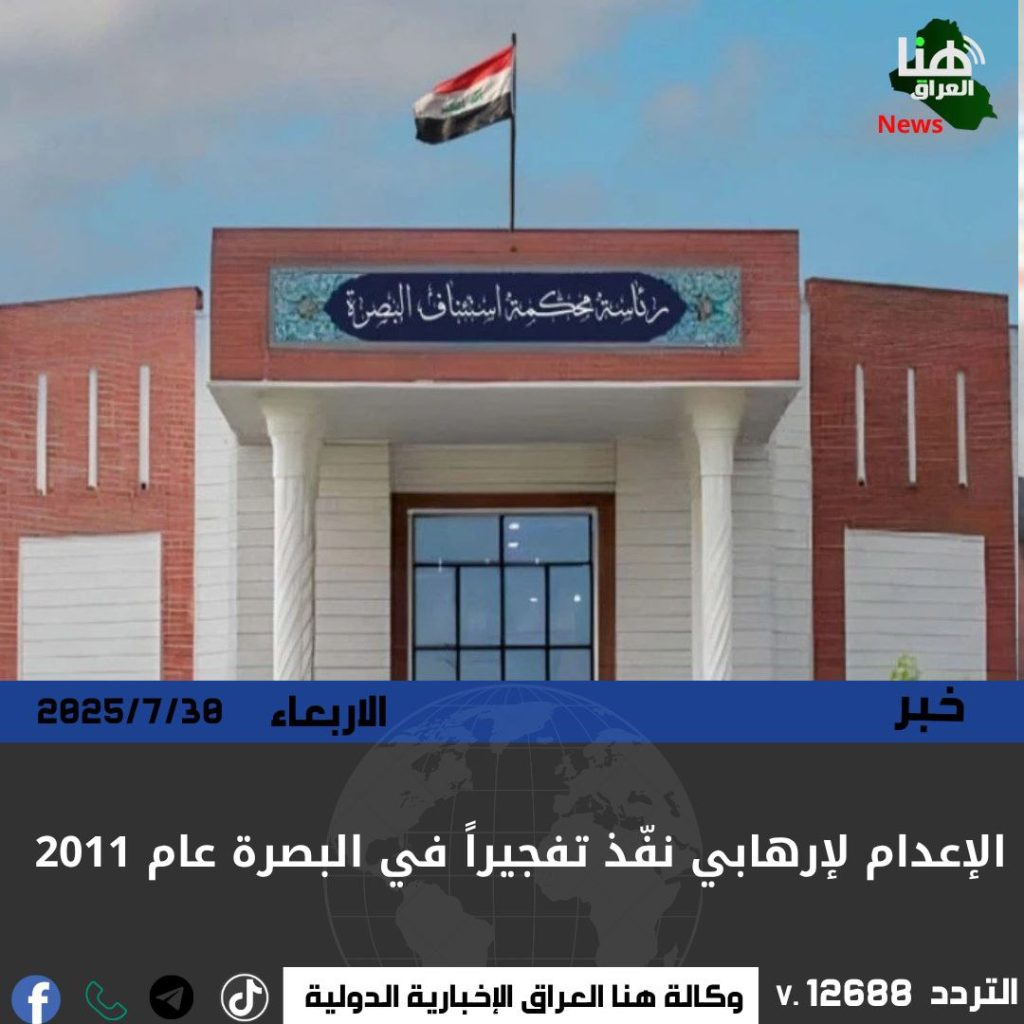الإعدام لإرهابي نفّذ تفجيراً في البصرة عام 2011