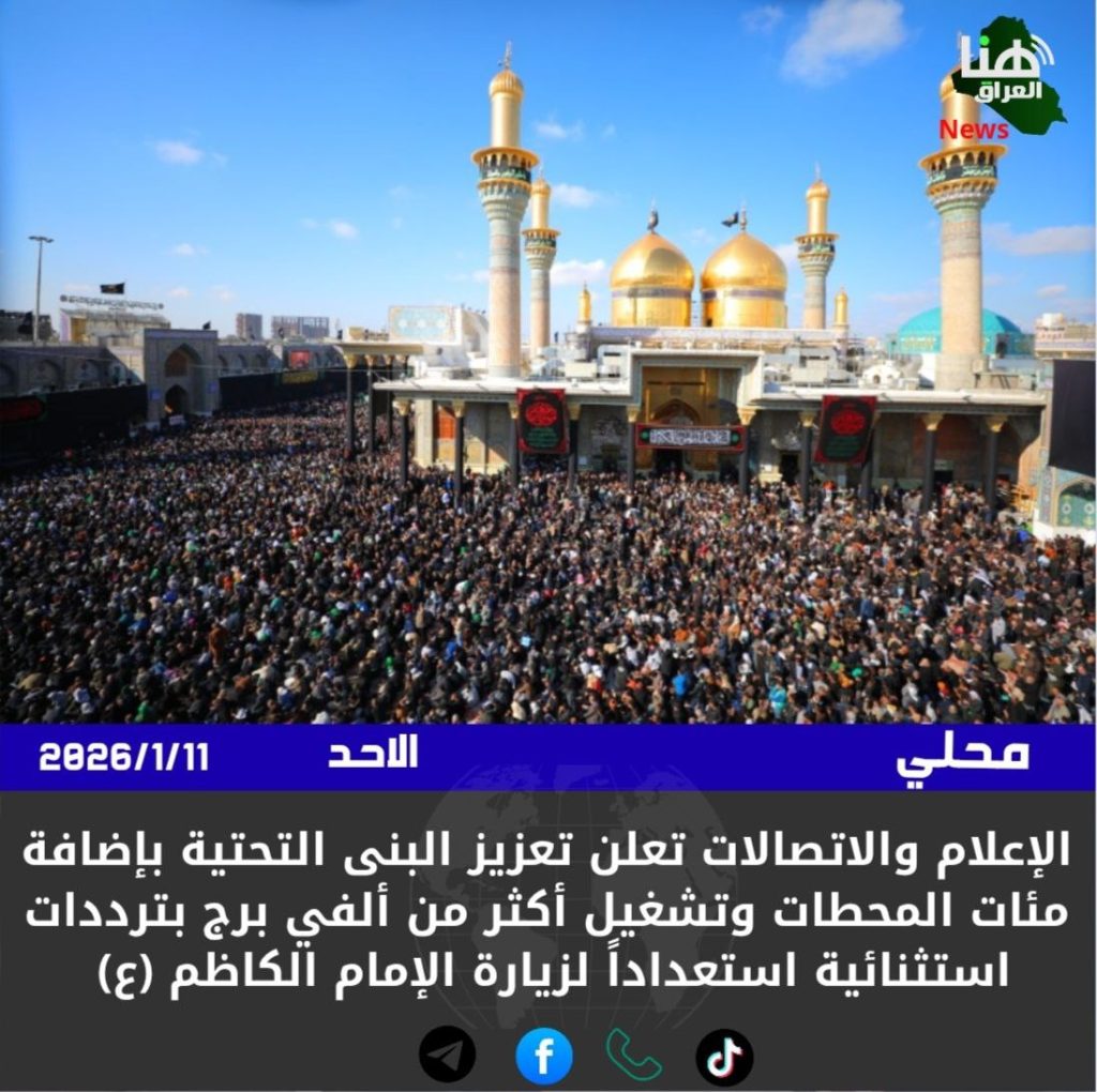 الإعلام والاتصالات تعلن تعزيز البنى التحتية بإضافة مئات المحطات وتشغيل أكثر من ألفي برج بترددات استثنائية استعداداً لزيارة الإمام الكاظم (ع)