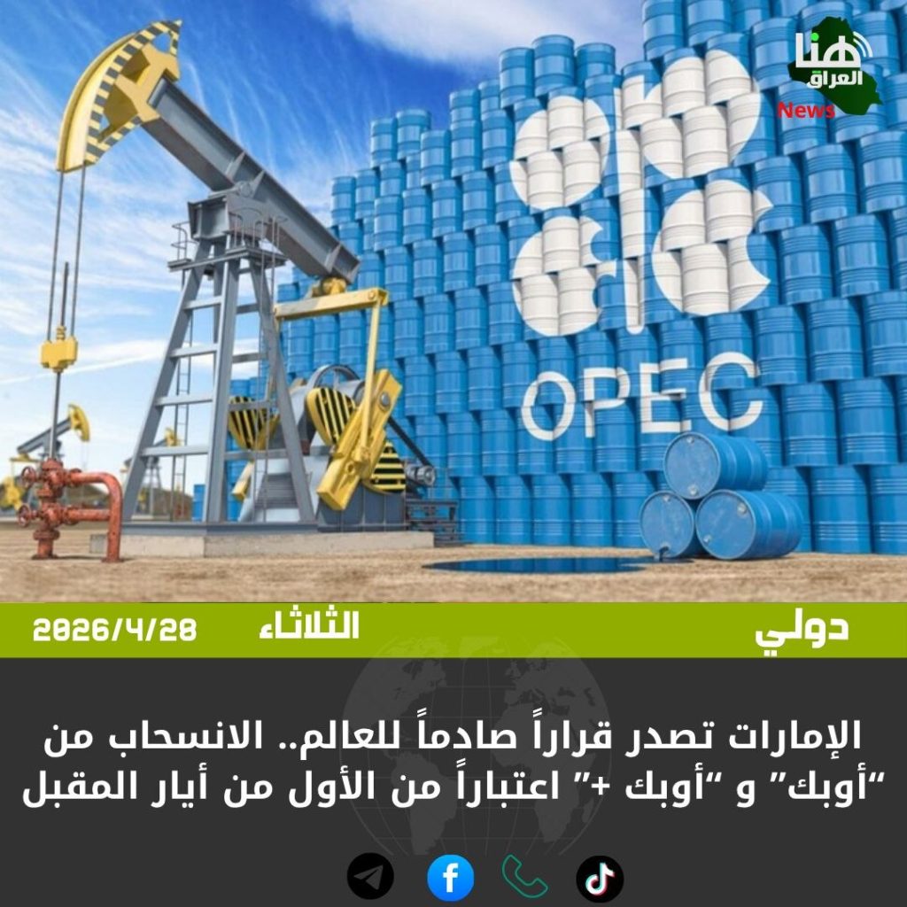 الإمارات تصدر قراراً صادماً للعالم.. الانسحاب من “أوبك” و “أوبك +” اعتباراً من الأول من أيار المقبل
