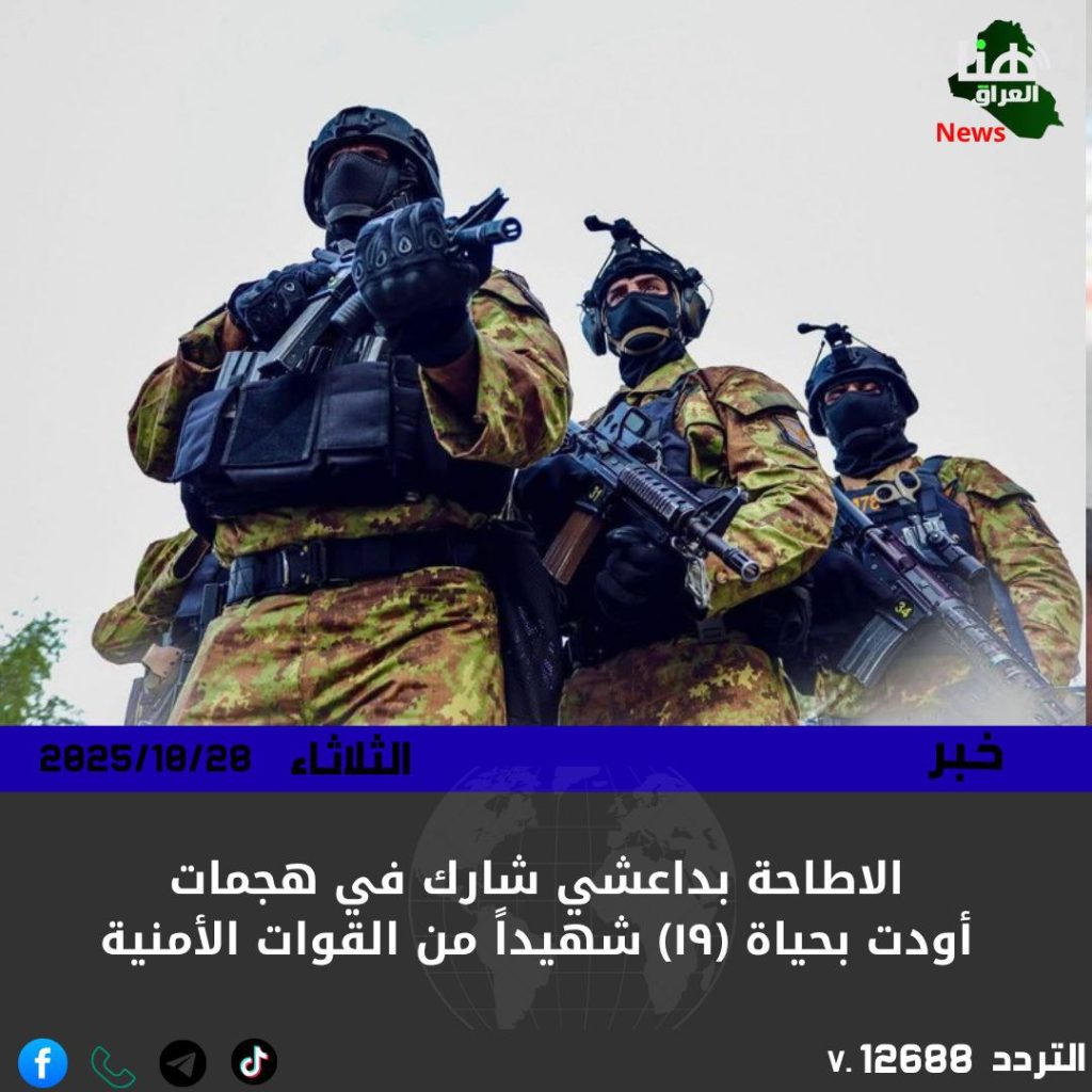 الاطاحة بداعشي شارك في هجمات أودت بحياة (١٩) شهيداً من القوات الأمنية