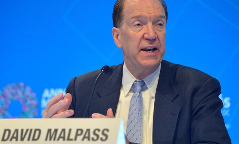 كشف رئيس البنك الدولي ديفيد مالباس، اليوم الاحد، عن توقعه انخفاض النمو الاقتصادي العالمي في الفترة ما بين عامي 2023 و2024، بسبب استمرار التضخم وانخفاض الاستثمار.