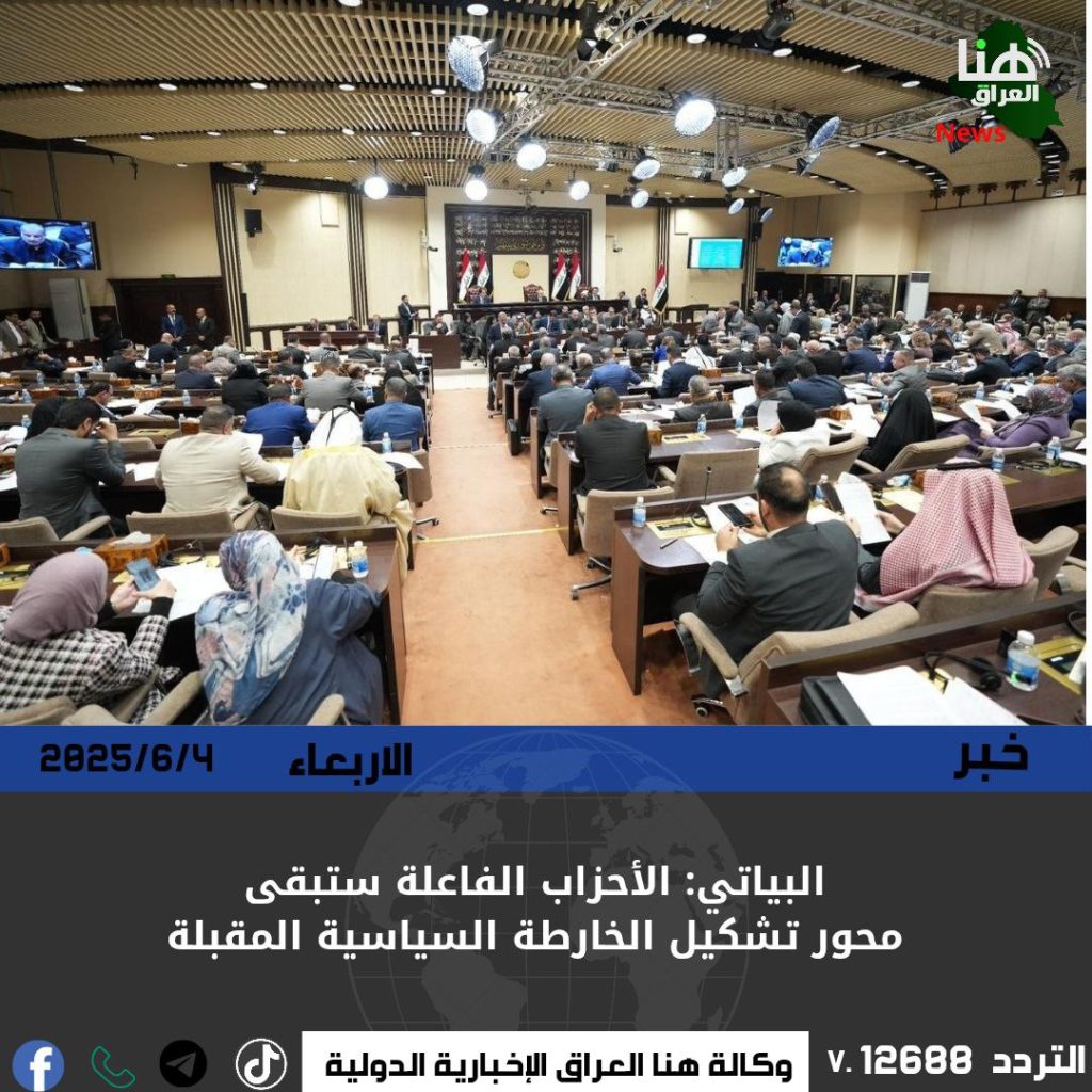 وأوضح البياتي أن الكتل السياسية الحالية، بما فيها قوى الإطار التنسيقي، الحزبين الكرديين، كتلتي “تقدم” و”العزم”، ستظل القوة الرئيسية في عملية تشكيل الحكومة المقبلة وإدارة الدولة.