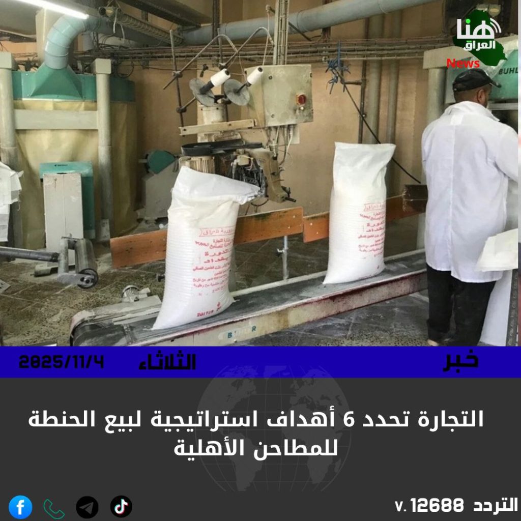 وأوضح المتحدث باسم الوزارة محمد حنون، أن القرار يأتي لتحقيق استقرار سوق الطحين الأبيض، وضمان استمرار عمل المطاحن بكفاءة، ودعم المنتج المحلي وتشجيع الفلاحين على مواصلة زراعة الحنطة، إضافة إلى الحفاظ على توازن الأسعار وتخفيف الضغط عن السوق.