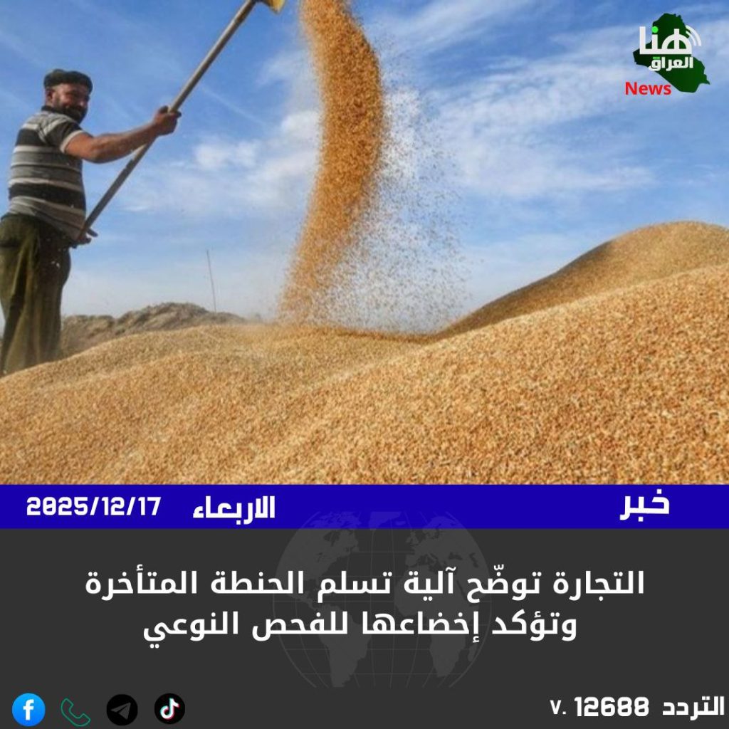 وأضاف أن التسلم يشمل الكميات المتأخرة من الموسم الحالي، أو الناتجة عن تفاوت مواعيد الحصاد بين المحافظات، أو الحنطة التي استُكملت إجراءات فحصها وتسويقها أصولياً.