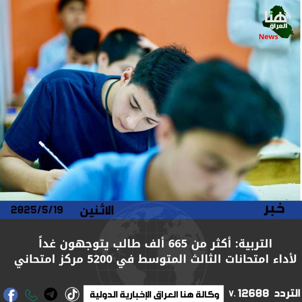 التربية: أكثر من 665 ألف طالب يتوجهون غداً لأداء امتحانات الثالث المتوسط في 5200 مركز امتحاني