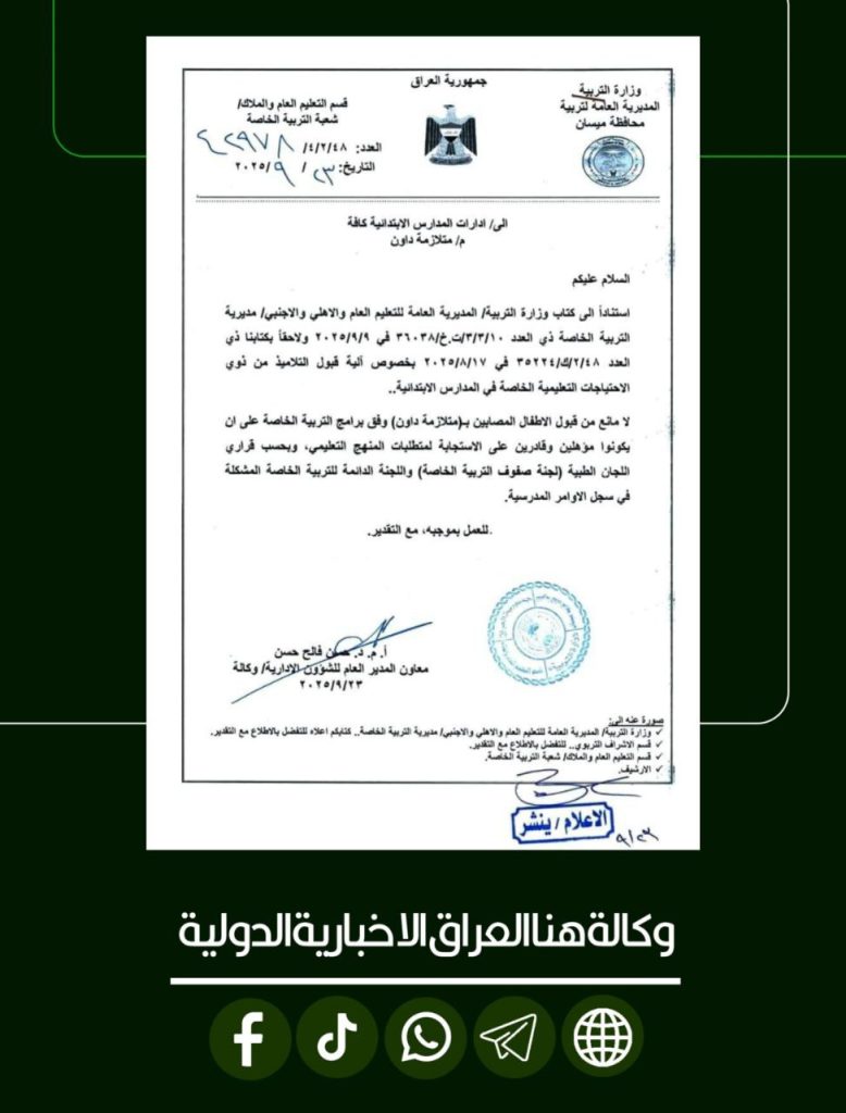 الرئيسية/محلي/التربية تحسم الجدل بشأن طريقة التعامل مع الطلاب المصابين بمتلازمة داون محلي التربية تحسم الجدل بشأن طريقة التعامل مع الطلاب المصابين بمتلازمة داون شاركها فيسبوك X لينكدإن Tumblr بينتيريست Reddit VKontakte Odnoklassniki Pocket مشاركة عبر البريد طباعة