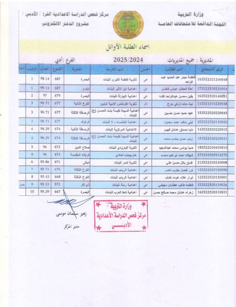الرئيسية/محلي/التربية تعلن أسماء الأوائل على العراق في الفرع الأدبي للعام الدراسي 2024-2025 محلي التربية تعلن أسماء الأوائل على العراق في الفرع الأدبي للعام الدراسي 2024-2025 شاركها فيسبوك X لينكدإن Tumblr بينتيريست Reddit VKontakte Odnoklassniki Pocket مشاركة عبر البريد طباعة
