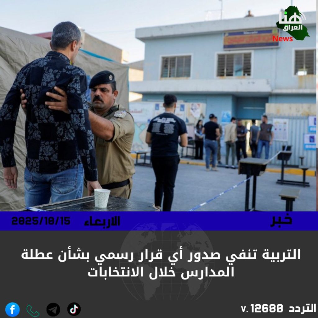 نفت وزارة التربية صدور أي قرار رسمي بتحديد موعد أو مدة عطلة المدارس تزامناً مع الانتخابات المقبلة، مؤكدة أن ما تم تداوله في بعض وسائل الإعلام ومواقع التواصل هو مجرد مفاتحة من قبل المفوضية العليا المستقلة للانتخابات لتفريغ بعض المدارس قبل موعد الاقتراع لأغراض لوجستية فقط.