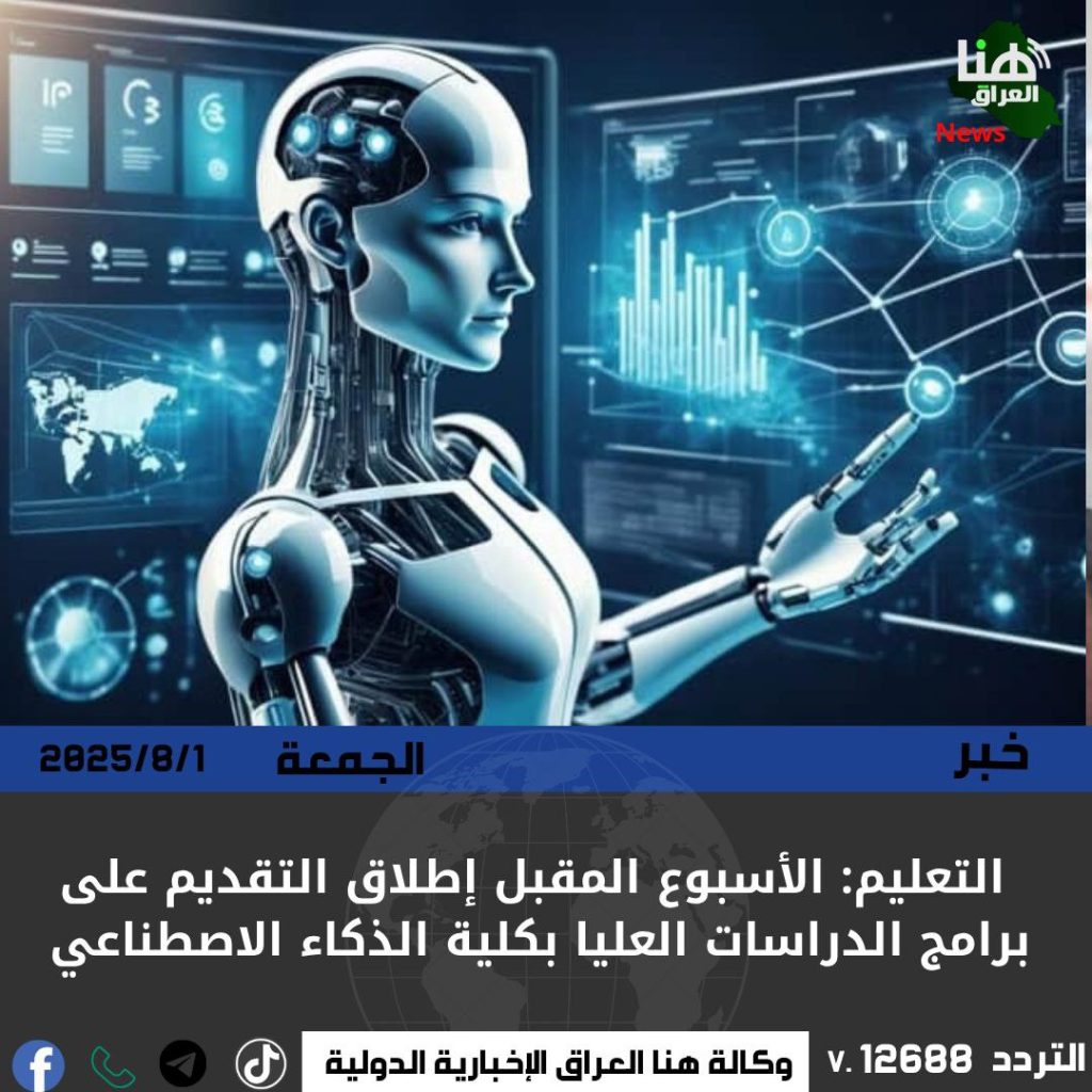 الرئيسية/دولي/التعليم: الأسبوع المقبل إطلاق التقديم على برامج الدراسات العليا بكلية الذكاء الاصطناعي دوليمحلي التعليم: الأسبوع المقبل إطلاق التقديم على برامج الدراسات العليا بكلية الذكاء الاصطناعي شاركها فيسبوك X لينكدإن Tumblr بينتيريست Reddit VKontakte Odnoklassniki Pocket مشاركة عبر البريد طباعة