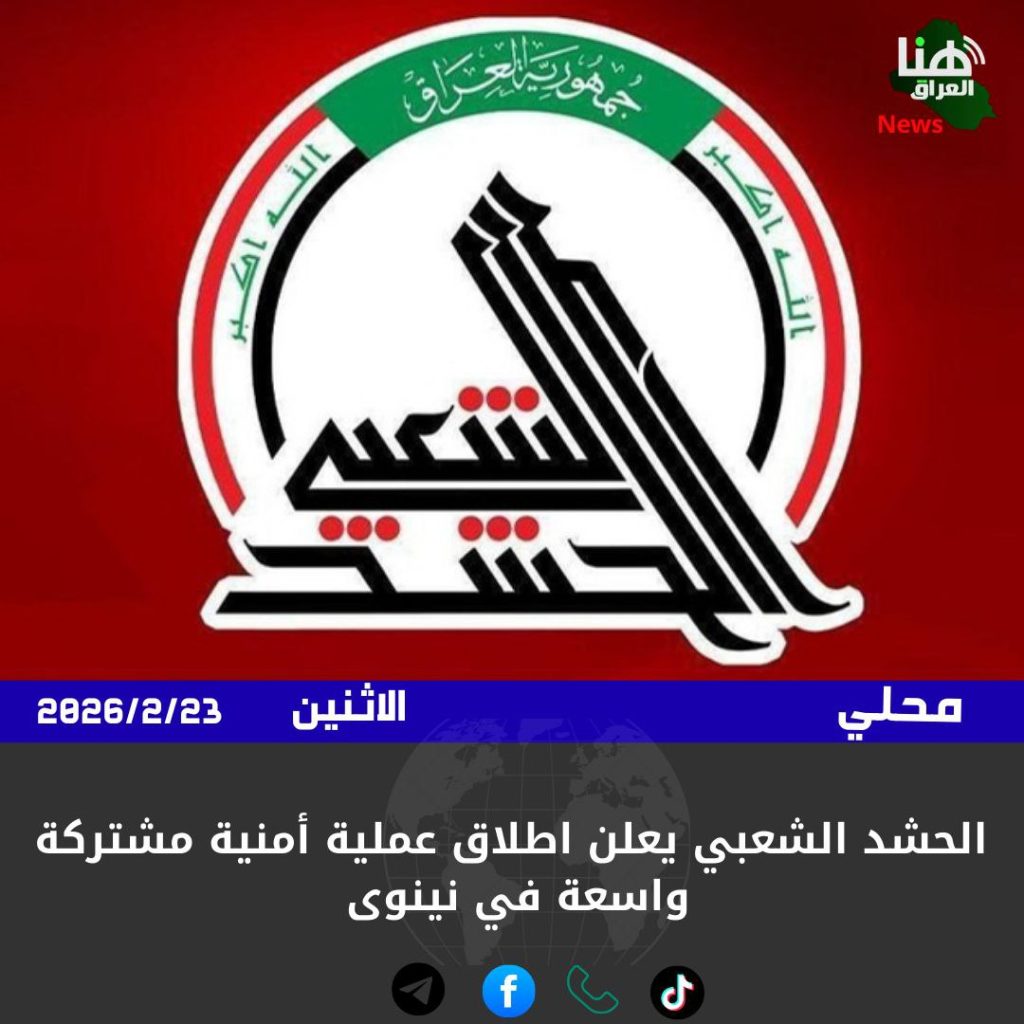 الرئيسية/امن/الحشد الشعبي يعلن اطلاق عملية أمنية مشتركة واسعة في نينوى امنمحلي الحشد الشعبي يعلن اطلاق عملية أمنية مشتركة واسعة في نينوى شاركها فيسبوك X لينكدإن Tumblr بينتيريست Reddit VKontakte Odnoklassniki Pocket مشاركة عبر البريد طباعة