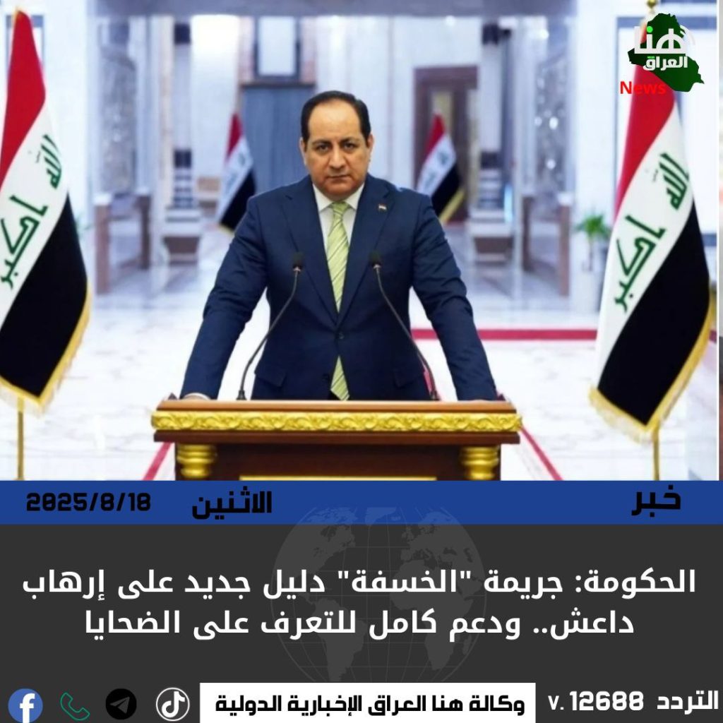 قال المتحدث باسم الحكومة إن الأدلة على إجرام عصابات داعش الإرهابية لا تزال تتكشف حتى بعد سنوات من هزيمتها، مشيراً إلى أن ما ارتكبته يمثل أسوأ انحراف فكري وعدوان شهدته المنطقة منذ قرون.