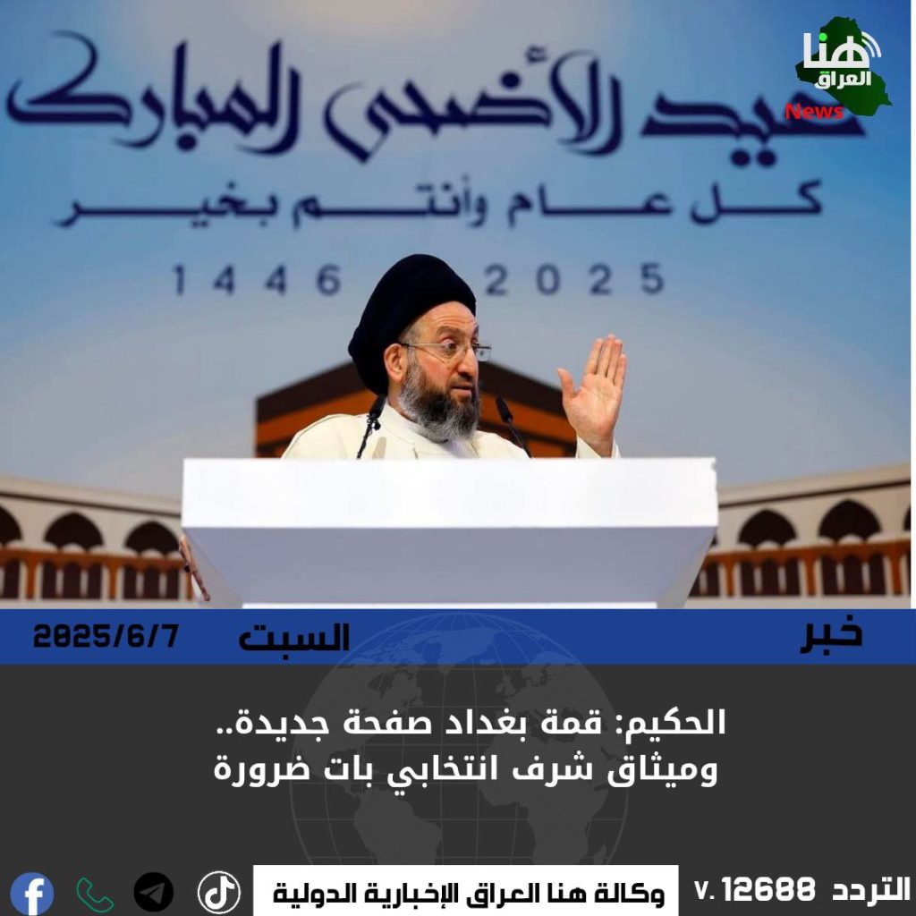 قال رئيس تيار الحكمة، السيد عمار الحكيم، في خطبة عيد الأضحى، إن قمة بغداد تمثل صفحة جديدة في مسار تعافي العراق وانفتاحه الإقليمي والدولي، مؤكداً أن بغداد باتت قادرة على لعب دور محوري في تقريب وجهات النظر.