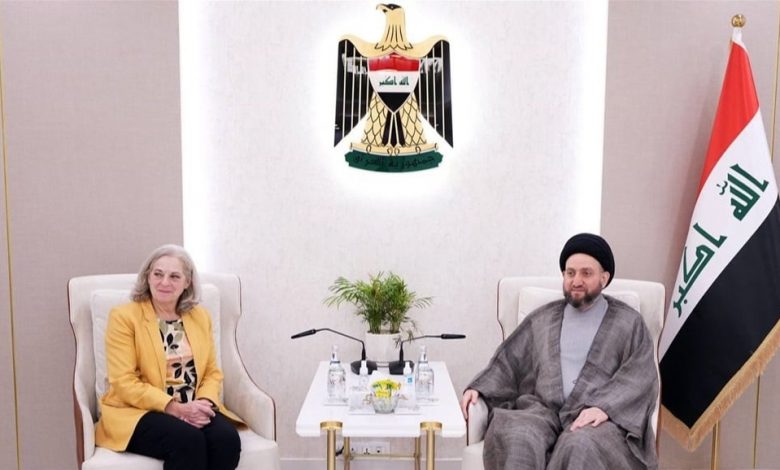 ونقل بيان لمكتب الحكيم ورد لوكالة هنا العراق الاخبارية ، لقد تباحث الحكيم خلال لقاءه السفيرة الامريكية تطورات المشهد السياسي في العراق والمنطقة وسبل تعزيز التعاون بين بغداد وواشنطن، حيث جدد إشادته بخطوة إقرار الموازنة الثلاثية، مبينا أن إقرارها لثلاث سنوات سيُمكنْ الحكومة من تنفيذ برنامجها الحكومي وفق الأولويات الحكومية.