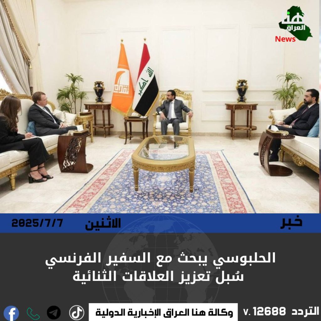 استقبل رئيس حزب تقدم محمد الحلبوسي، السفير الفرنسي لدى العراق، باتريك دوريل، في لقاء تناول سبل دعم العلاقات الثنائية بين العراق وفرنسا بمختلف المجالات.