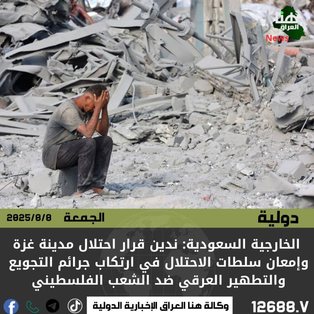 الخارجية السعودية: ندين قرار احتلال مدينة غزة وإمعان سلطات الاحتلال في ارتكاب جرائم التجويع والتطهير العرقي ضد الشعب الفلسطيني