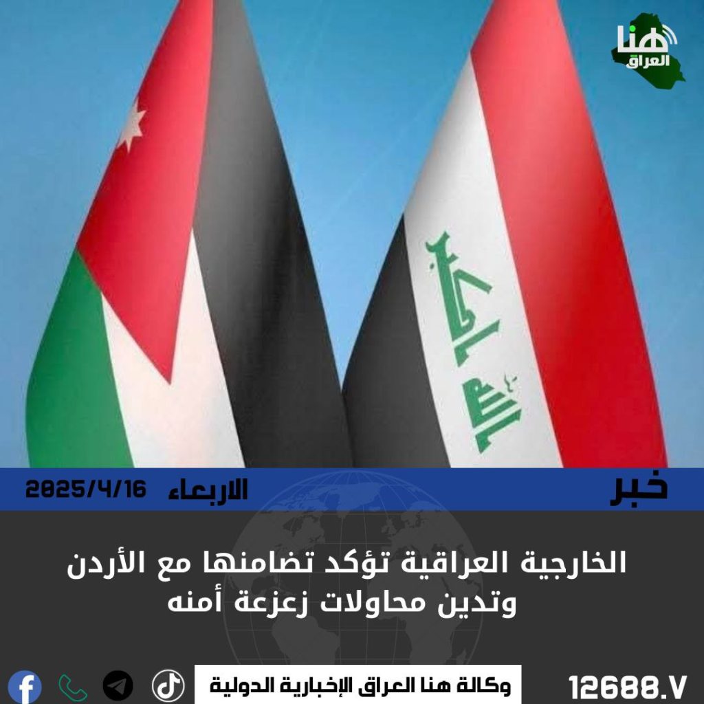 وأكدت الخارجية في بيان رسمي أن “موقف العراق ثابت إلى جانب الأردن في مواجهة التحديات الأمنية”، مشددة على أن “أمن المملكة الأردنية هو جزء لا يتجزأ من أمن واستقرار المنطقة ككل”.