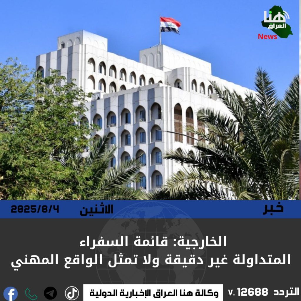 نفت وزارة الخارجية صحة القوائم التي تداولتها وسائل الإعلام مؤخرًا بشأن مرشحي درجة سفير، مؤكدة أن تلك القوائم غير دقيقة ولا تعكس الخلفيات الوطنية والمهنية للأسماء المرشحة.