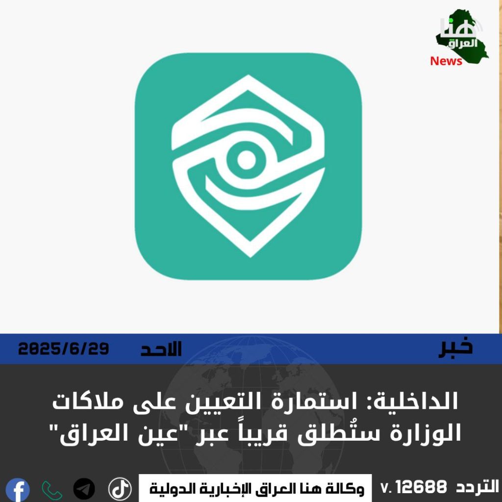 أعلنت وزارة الداخلية أن استمارة التقديم على التعيين ضمن ملاكاتها ستُطلق خلال الأيام القليلة المقبلة، مشيرةً إلى أن التقديم سيكون حصراً عبر تطبيق “عين العراق”.