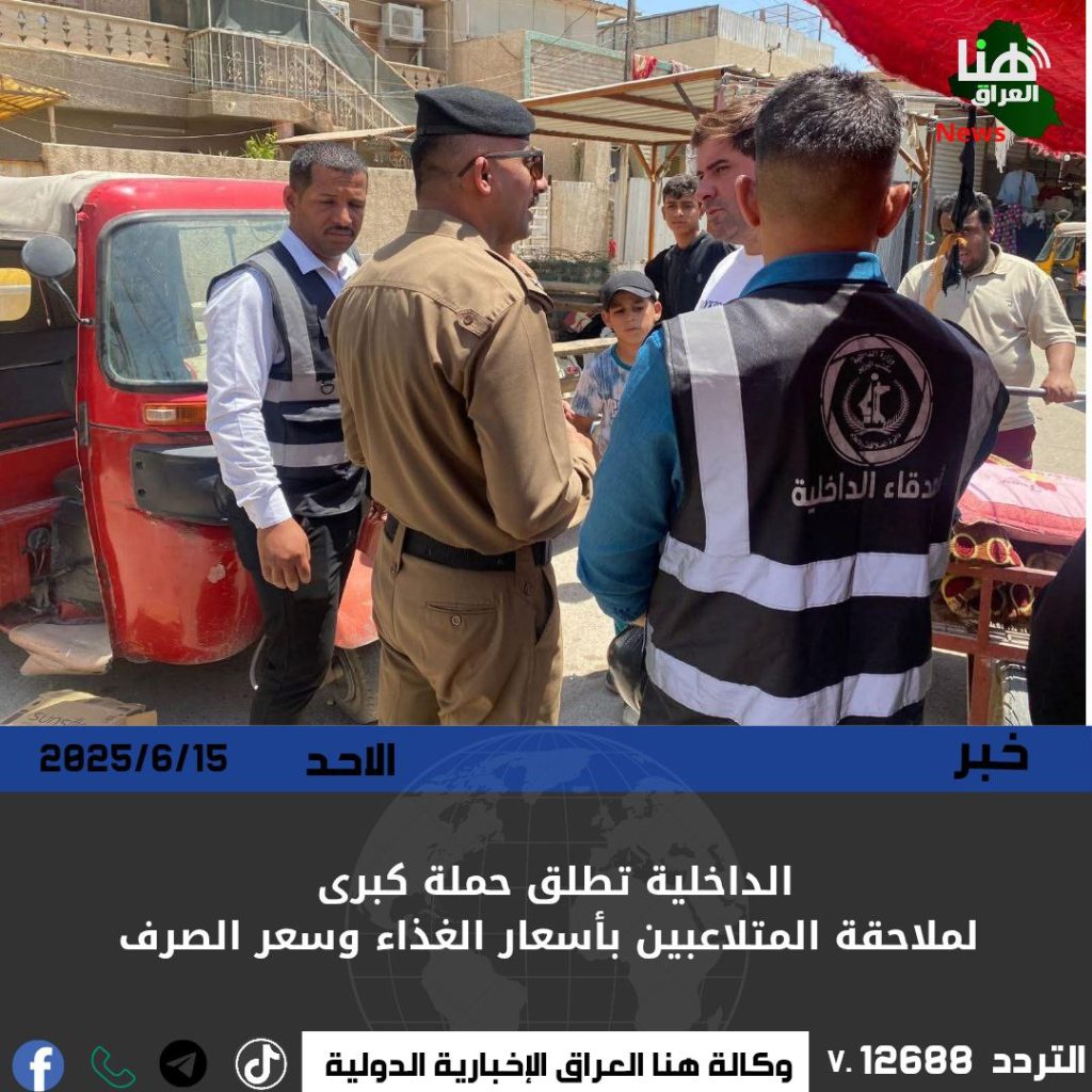 شرعت وزارة الداخلية بحملة كبرى لمتابعة المتلاعبين بأسعار المواد الغذائية ومن يروج لارتفاع سعر صرف الدولار مقابل الدينار العراقي، في محاولة لضبط الأسواق وحماية القدرة الشرائية للمواطنين.