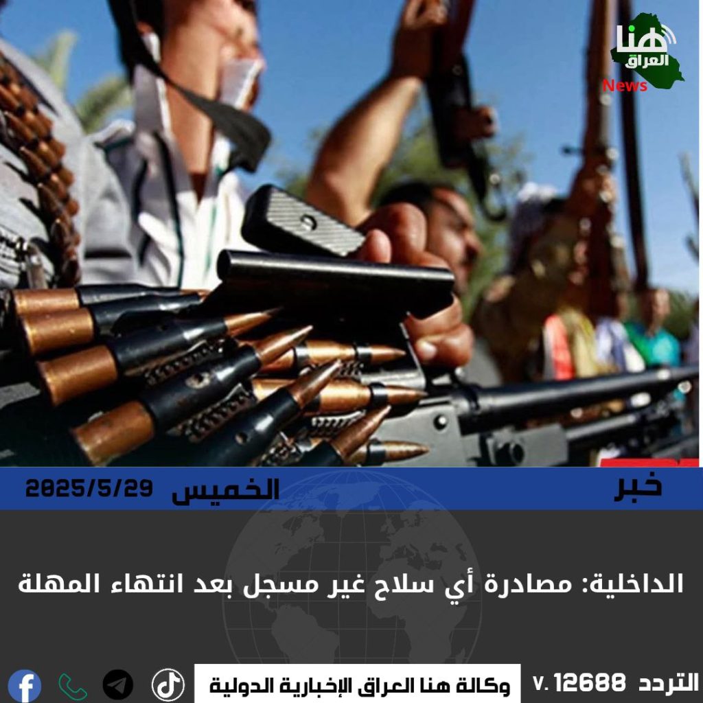 وقال المتحدث باسم الوزارة، العقيد عباس البهادلي، إن تسجيل السلاح يتم عبر بوابة أور الإلكترونية، ويشمل فحصاً جنائياً قبل إصدار هوية الحيازة، داعياً المواطنين للإسراع قبل نفاد المهلة القانونية.